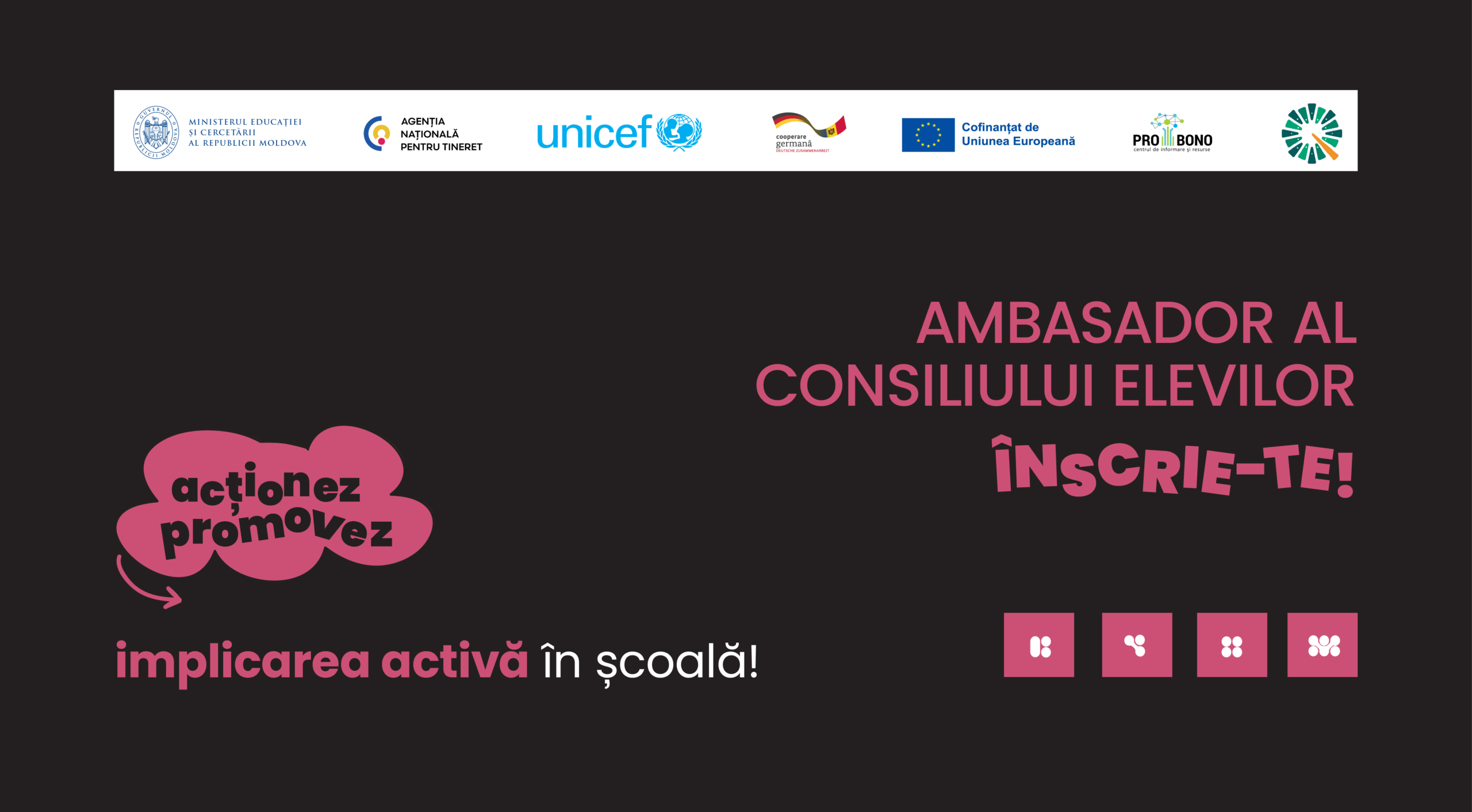 Ești membră sau membru al Consiliului Elevilor și dorești să înțelegi și să exersezi cum au loc alegerile democratice și corecte în școala ta. Participă la un training organizat pentru tine și colegii tăi. Devino Ambasador al Consiliului Elevilor.