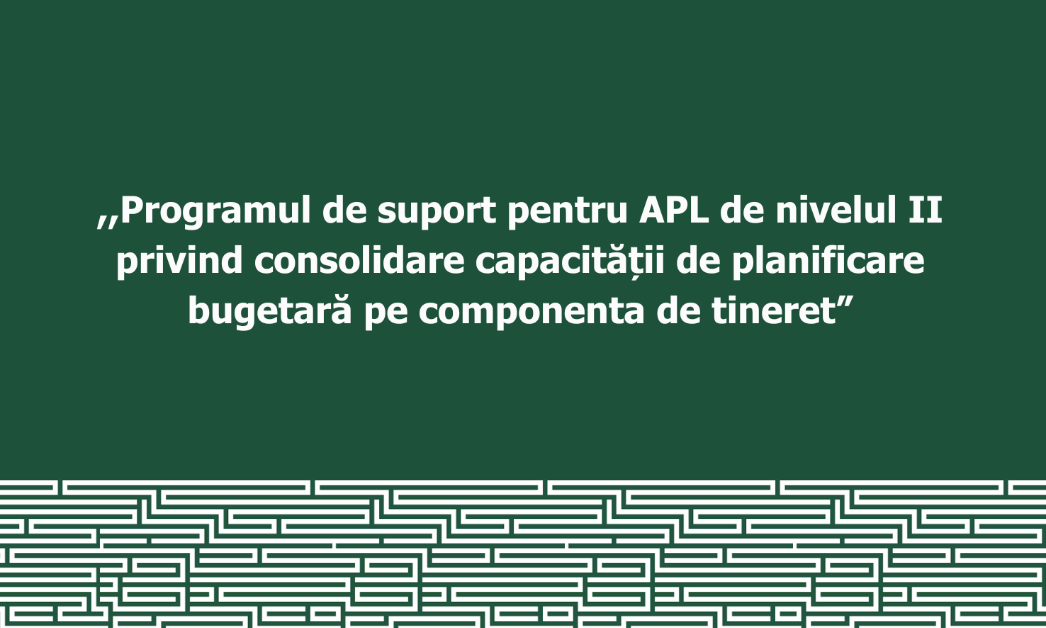 Programul de suport pentru APL de nivelul II privind consolidare capacității de planificare bugetară pe componenta de tineret este implementat de către Centrul de Informare și Resurse PRO BONO, în parteneriat cu UNFPA Moldova, Ministerul Educației și Cercetării al Republicii Moldova, Agenția Națională pentru Tineret și Guvernul Elveției.