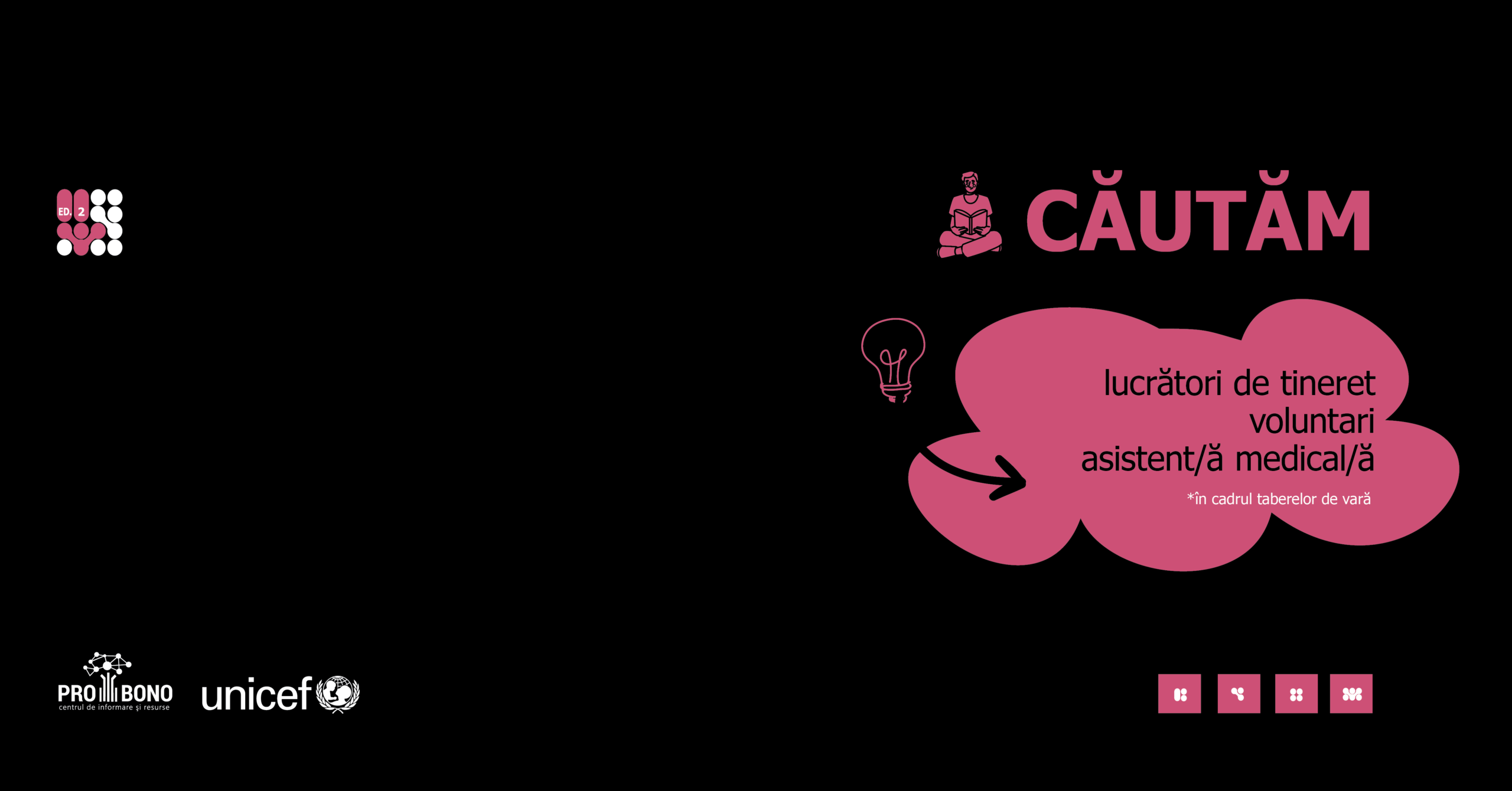 Expediază CV-ul și răspunsul tău la întrebarea „De ce ar trebui să te selectăm anume pe tine?” la adresa: cir.probono@gmail.com, cu mențiunea poziției pentru care optezi (voluntar, lucrător de tineret, asistent medical) în cadrul Taberei de vară 2024”.